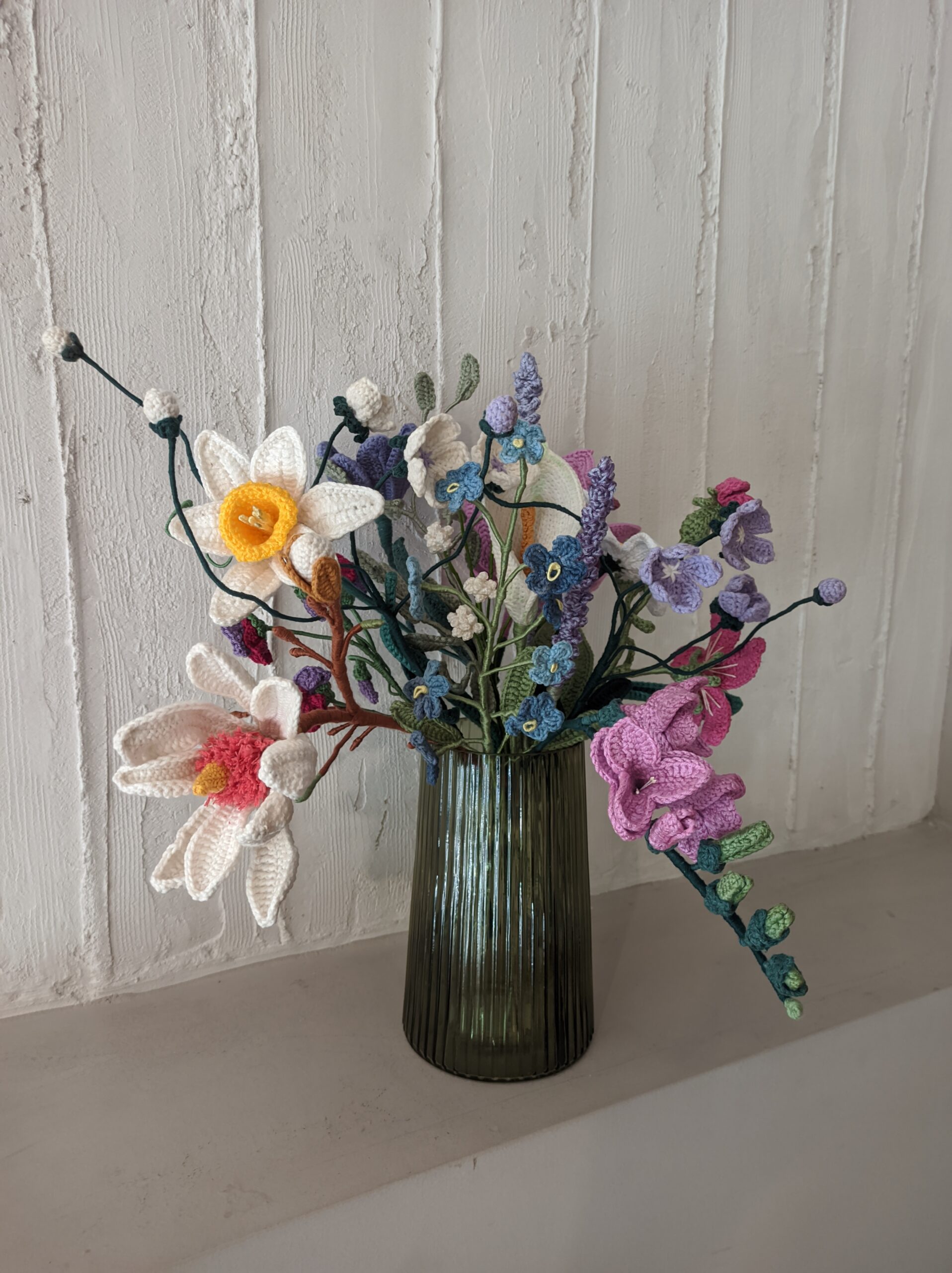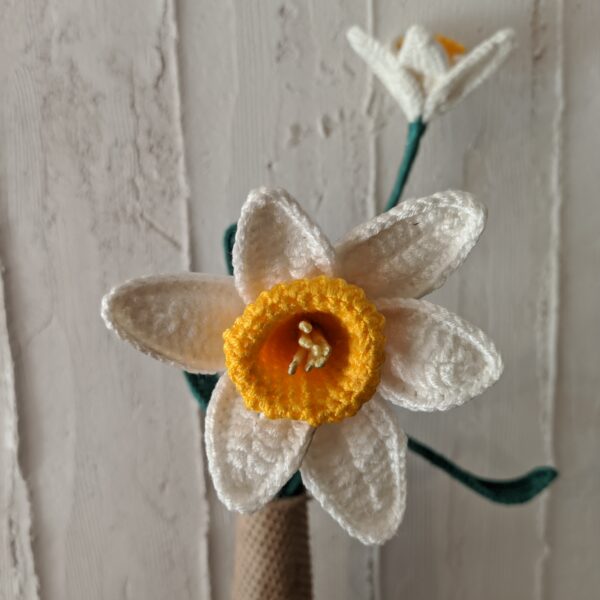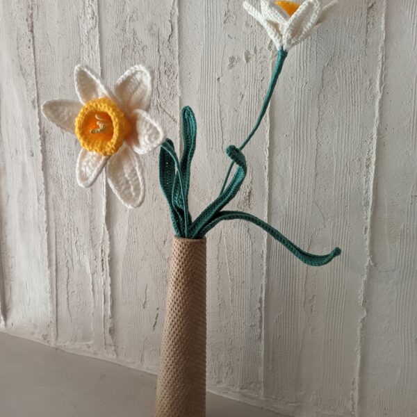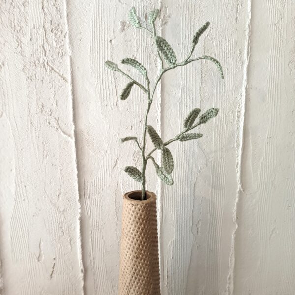 This stunning crocheted magnolia branch brings the natural beauty of the flower into your home in a timeless, handmade way. The large cream bloom is accompanied by a bud, creating a realistic and elegant appearance. The branch measures approximately 35 cm in height, with a sturdy, flexible stem that adds a natural touch.