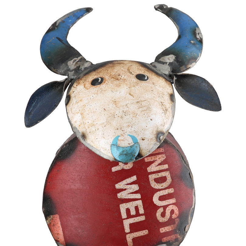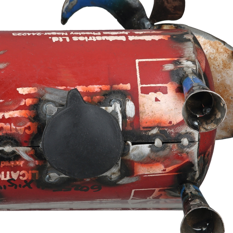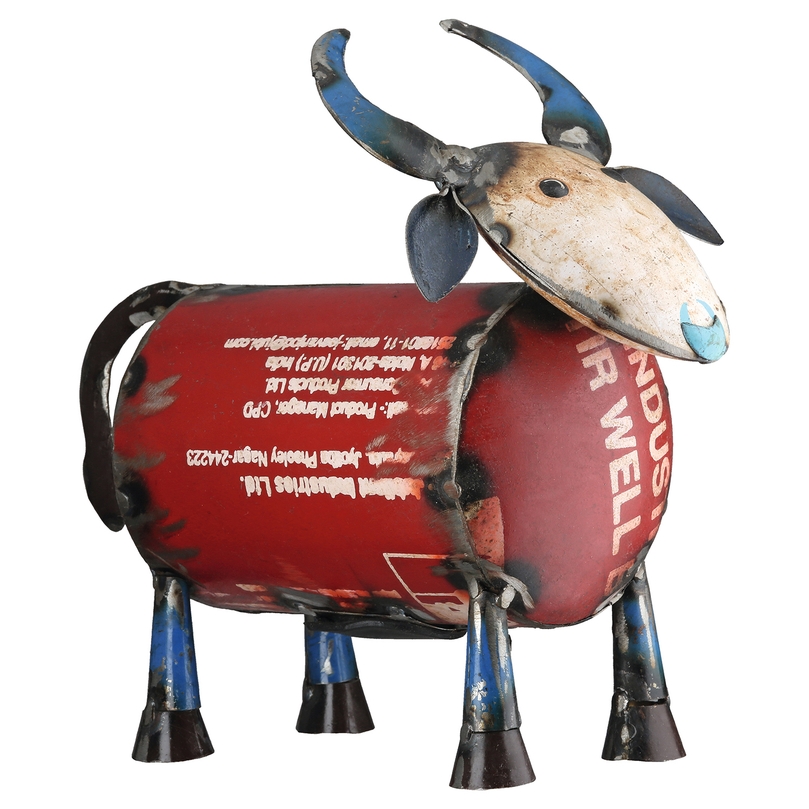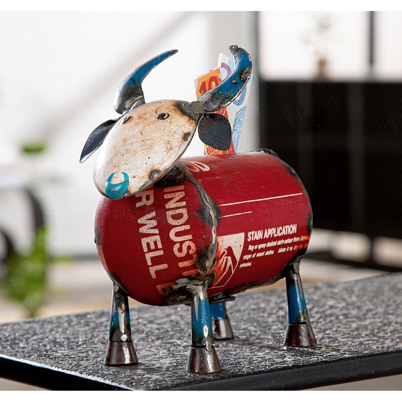 Αυτή η φιγούρα με τη μορφή ταύρου είναι κατασκευασμένη από ανακυκλωμένο σίδερο και διαθέτει αντικέ φινίρισμα σε μαύρο και κόκκινο χρώμα με λευκές και μπλε πινελιές. Με ύψος 20,5 cm, πλάτος 23 cm και βάθος 11,5 cm, προσφέρει άφθονο χώρο για τις αποταμιεύσεις σας. Η στιβαρή κατασκευή και ο ελκυστικός σχεδιασμός κάνουν το κουμπαρά Bull ένα ιδανικό δώρο ή διακοσμητικό στοιχείο για το σπίτι σας.