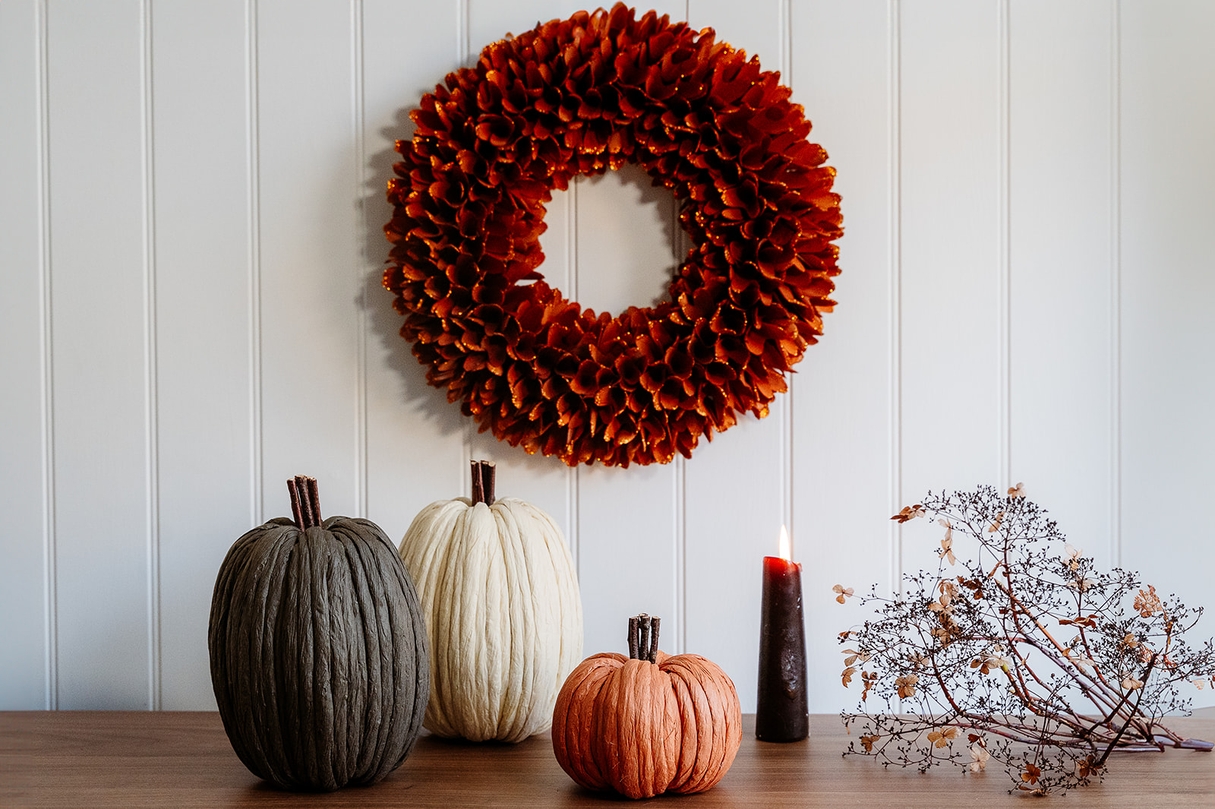 Προσθέστε μια πινελιά διαχρονικής σύγχρονης γοητείας στις εποχιακές σας συνθέσεις με αυτή την υπέροχη κρεμ κολοκύθα από paper yarn.