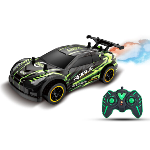 Τηλεκατευθυνόμενο αγωνιστικό όχημα με εξάτμιση που βγάζει καπνό, φώτα και τηλεχειριστήριο.