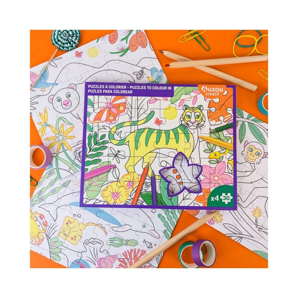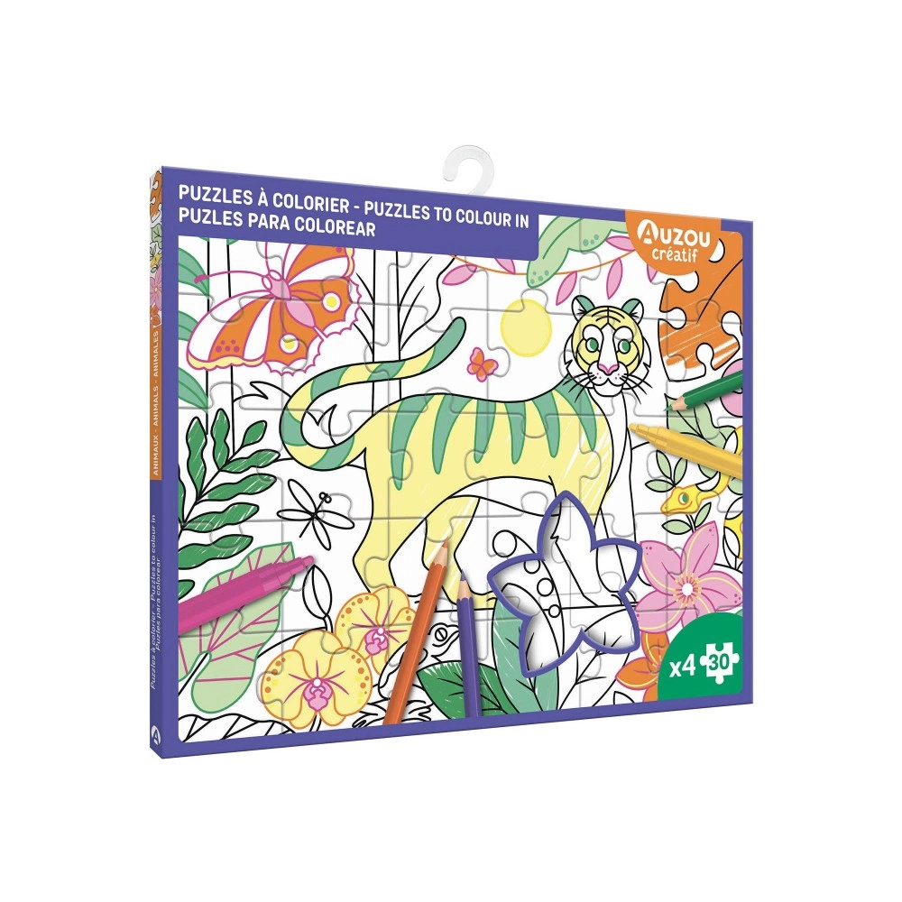 Απολαύστε ώρες διασκέδασης και δημιουργικής απασχόλησης με αυτό το σετ που διαθέτει 4 παζλ των 30 κομματιών για να συναρμολογήσετε και να χρωματίσετε.
