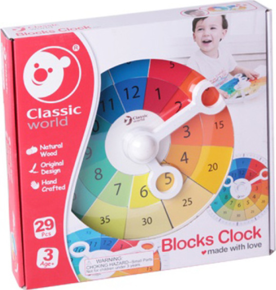 Για να κάνει πιο εύκολη την εκμάθηση της ώρας, το Blocks Clock έχει κάθε ψηφίο σε ξεχωριστό πλακίδιο με διαφορετικό χρώμα. Με αυτόν τον τρόπο, το παιδί θα πρέπει να τακτοποιήσει σωστά τους αριθμούς, βοηθούμενο από τις χρωματικές διαβαθμίσεις των πλακιδίων. Ένα εκπαιδευτικό και παράλληλα διασκεδαστικό παιχνίδι, που ενθαρρύνει την ανάπτυξη της λογικής σκέψης και εξασκεί την παρατηρητικότητα.