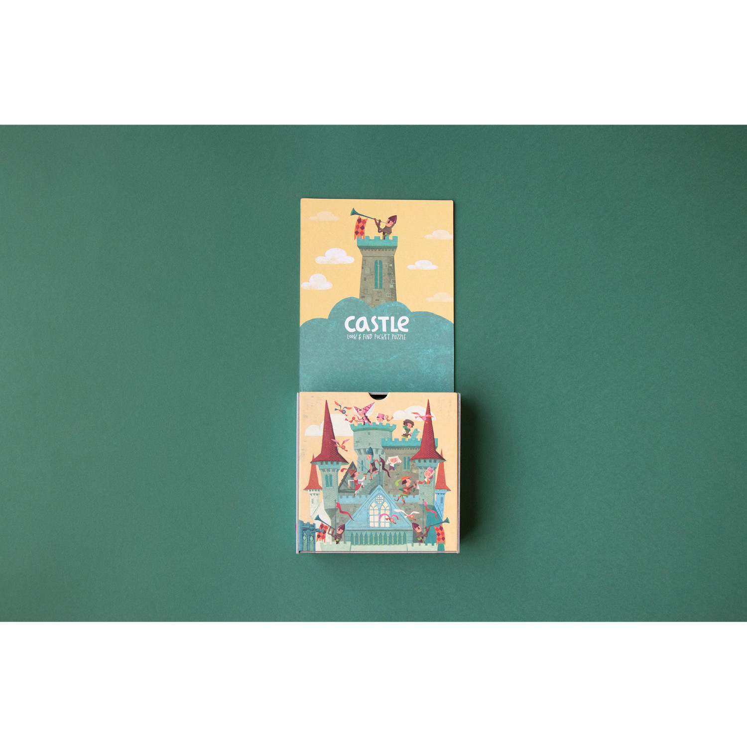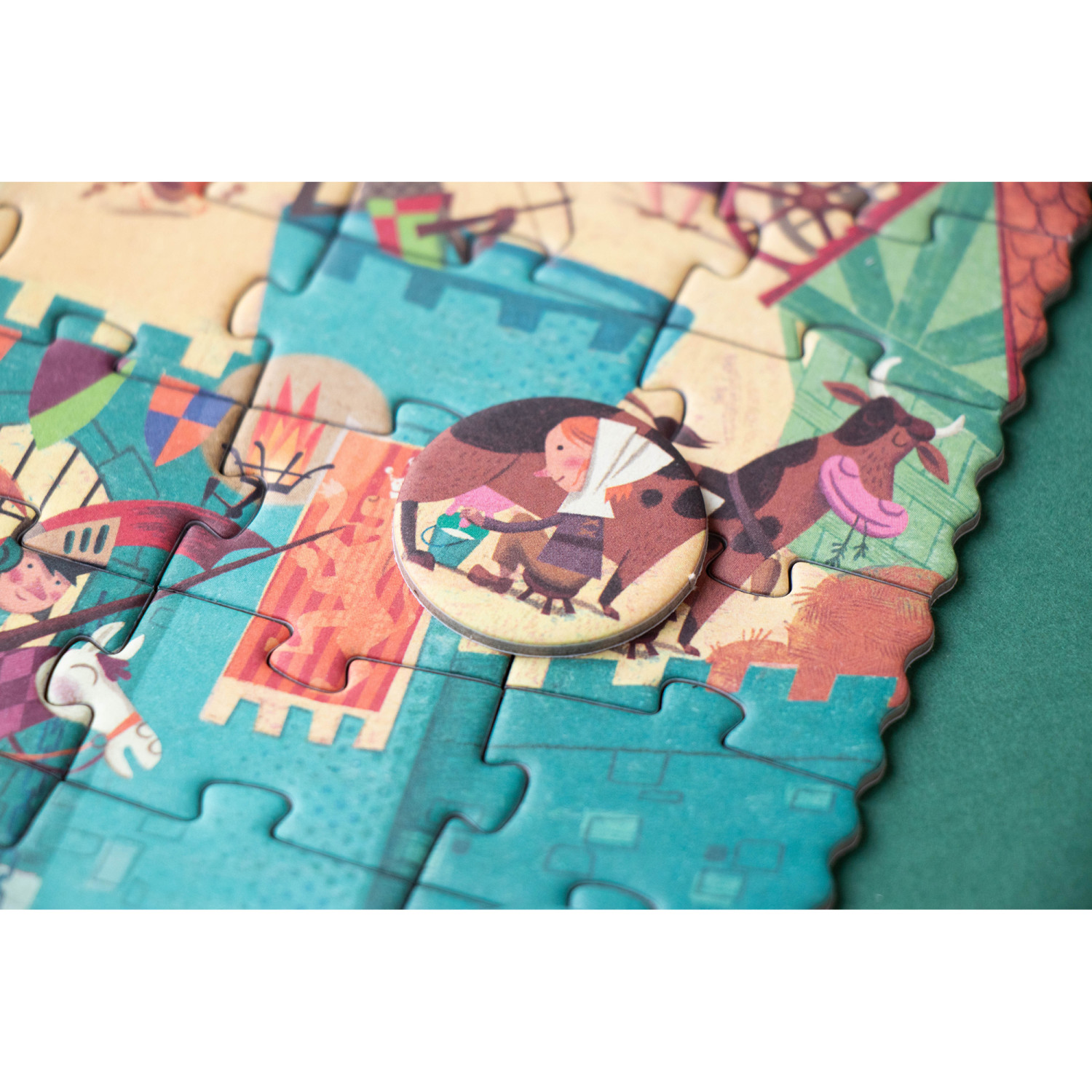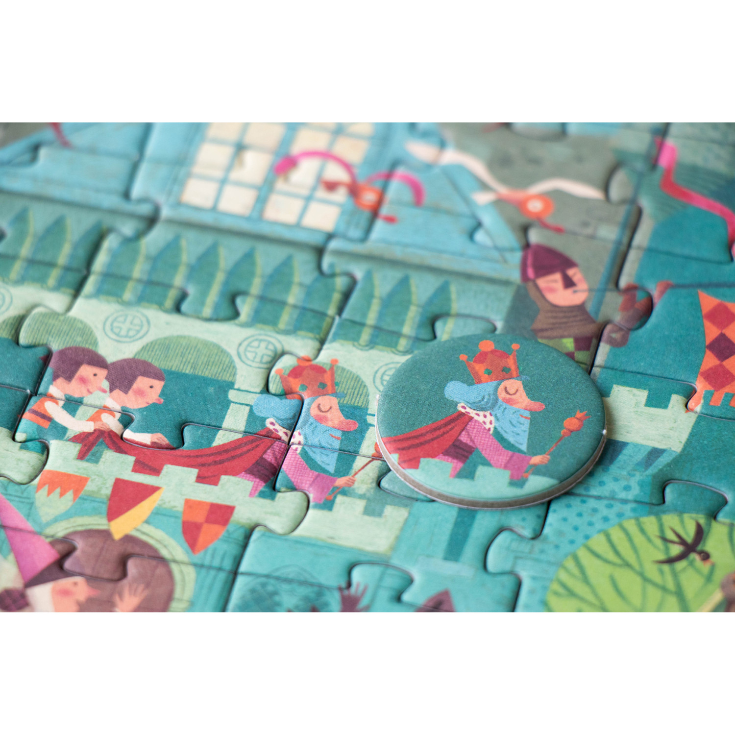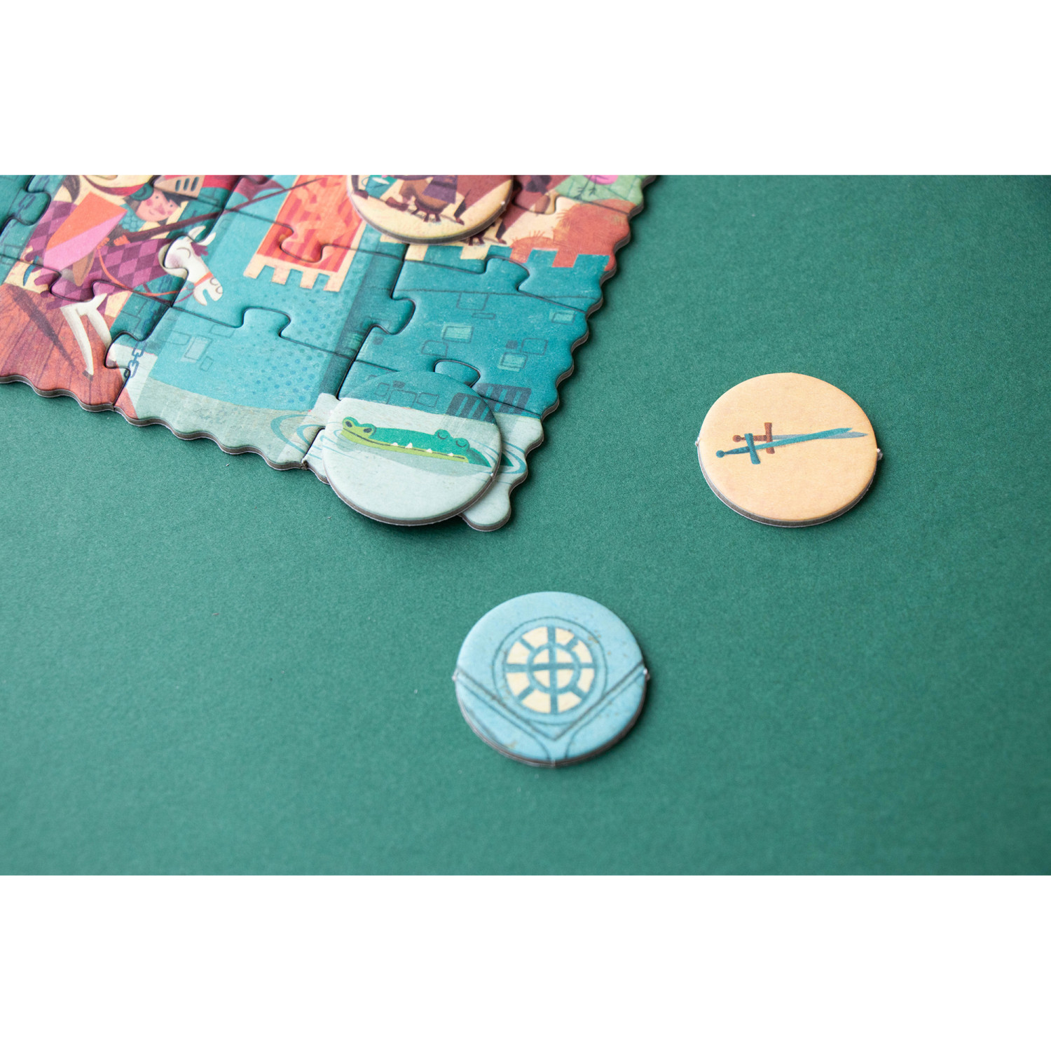 Υπάρχουν τόσα πολλά πράγματα να ανακαλύψετε σε αυτό το παζλ 100 κομματιών με θέμα ένα μεσαιωνικό κάστρο! Συναρμολογήστε την εικόνα και διασκεδάστε ψάχνοντας να βρείτε τα 16 αντικείμενα που απεικονίζονται στις μάρκες.